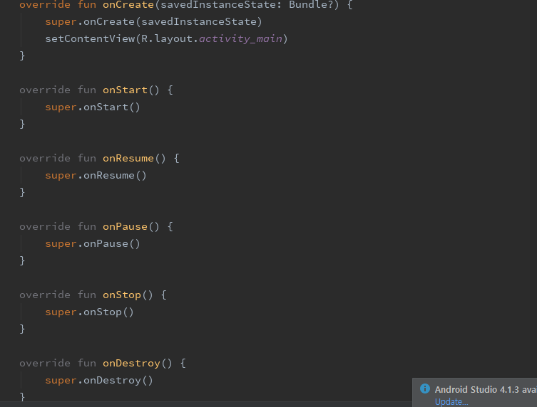 super를 호출하지않으면 액티비티가 정상적으로 동작하지 않기에 가장 먼저 호출한 후 다른 코드를 추가한다.