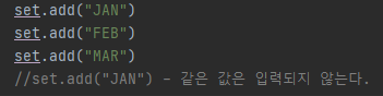 Set은 중복을 허용하지 않아 중복된 값을 추가 할 수 없습니다.