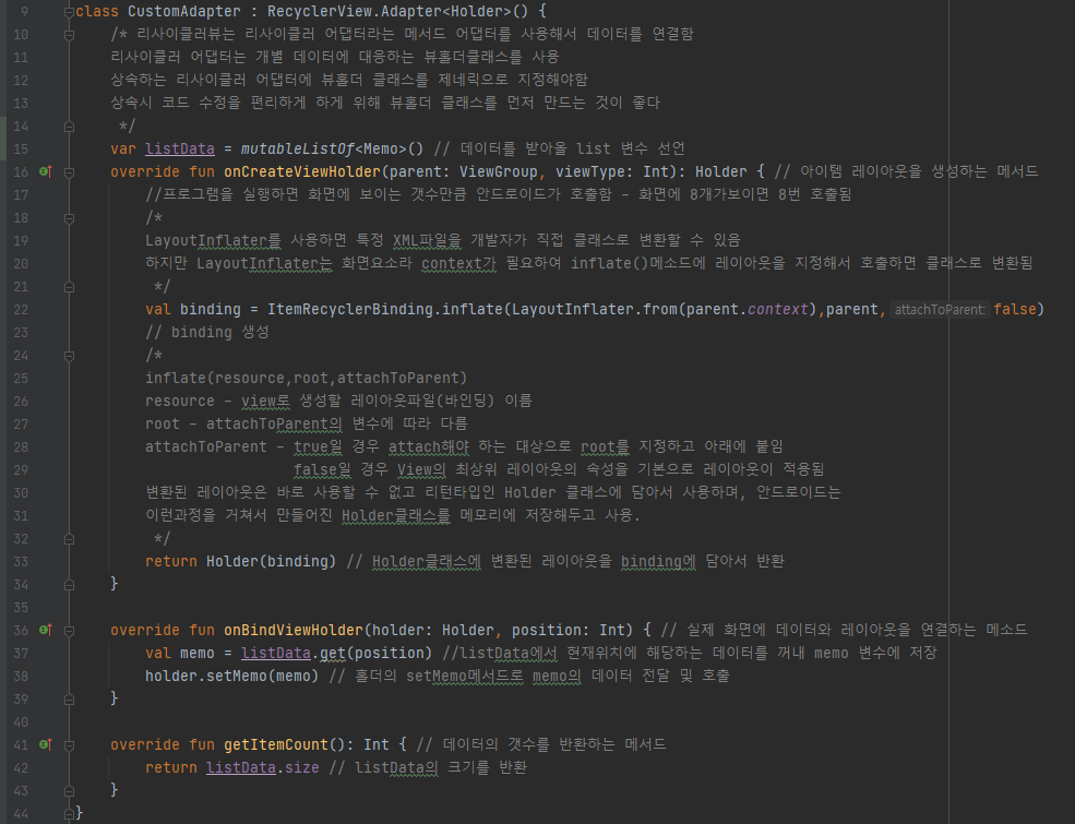 recyclerView에서 주로 사용되는데 adapter의 onCreateViewHolder에서 binding을 생성후 ViewHolder에 넘겨주는 방식입니다.